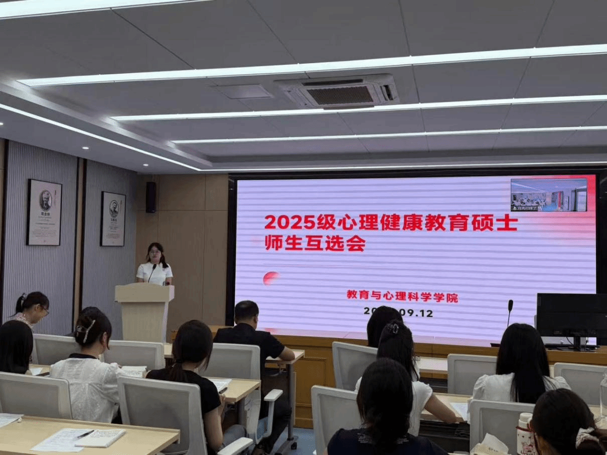 2025年9月12日下午,教育与心理科学学院举办2025级心理健康教育专业研究生导师互选会,会议采用线上线下相结合的方式进行,全体心理健康...