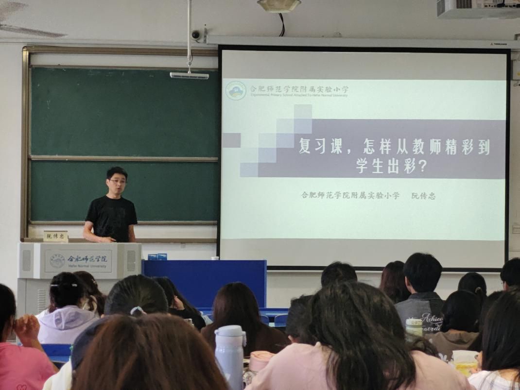 为深入推进实习工作顺利开展,9月21日上午,教育与心理科学学院在锦绣校区逸夫楼A201教室开展小学教育专业实习指导会,学院邀请合肥师范学院附属实验小学教师发展部主任阮传忠以《复习课,如何从教师的精彩到学生的出彩》为主题进行指导。教育与心理科学学院副院长闫龙出席会议,2021级小学教育专业全体学生参加会议,会议由韦立君副教授主持。