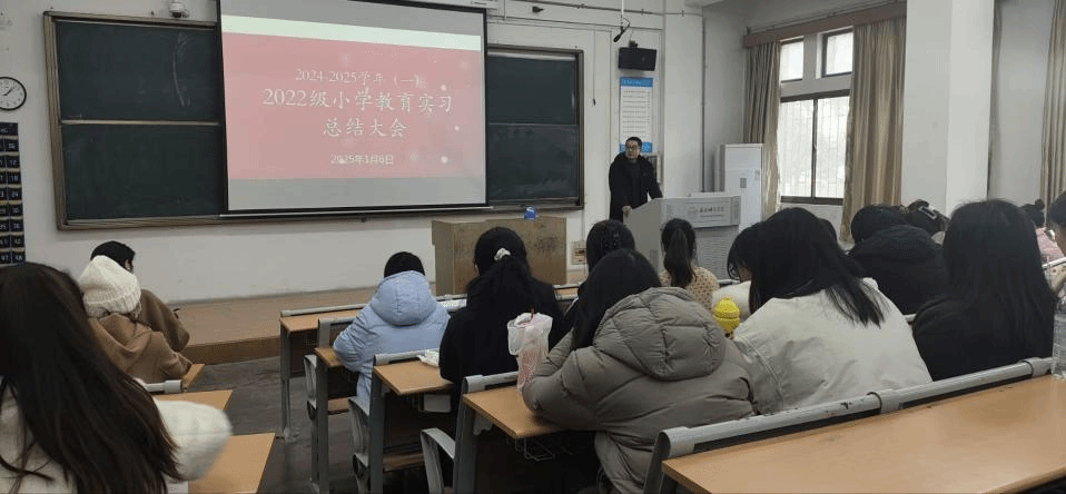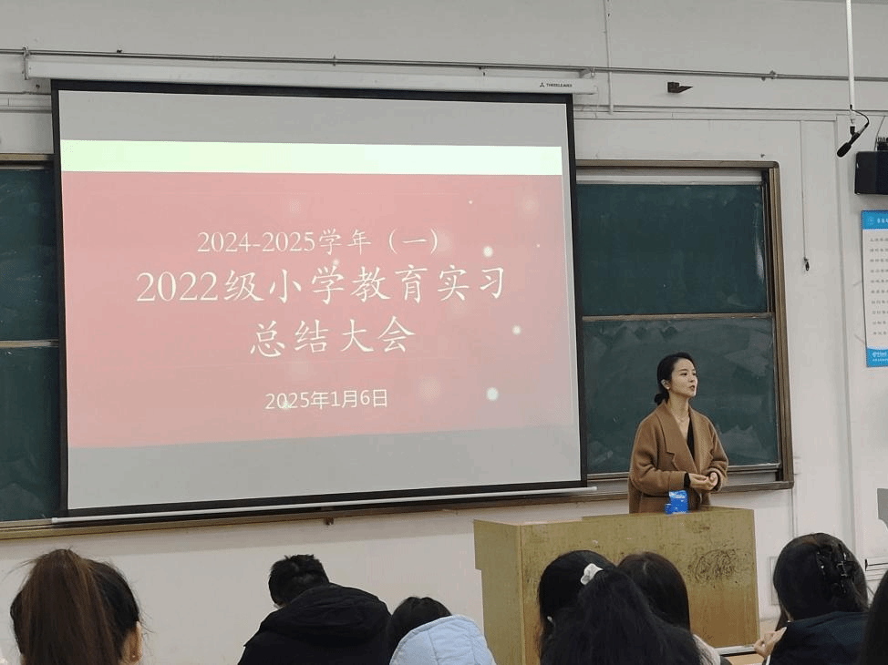 为提高学生教育实习效果,提高学生学习获得感,2025年1月6日下午,教育与心理科学学院在锦绣校区博约楼举办小学教育专业实习总结汇报大会。教育与心理科学学院副院长胡连峰,以及2022级小学教育专业全体学生参加汇报活动,总结大会由教育系副主任唐银主持。