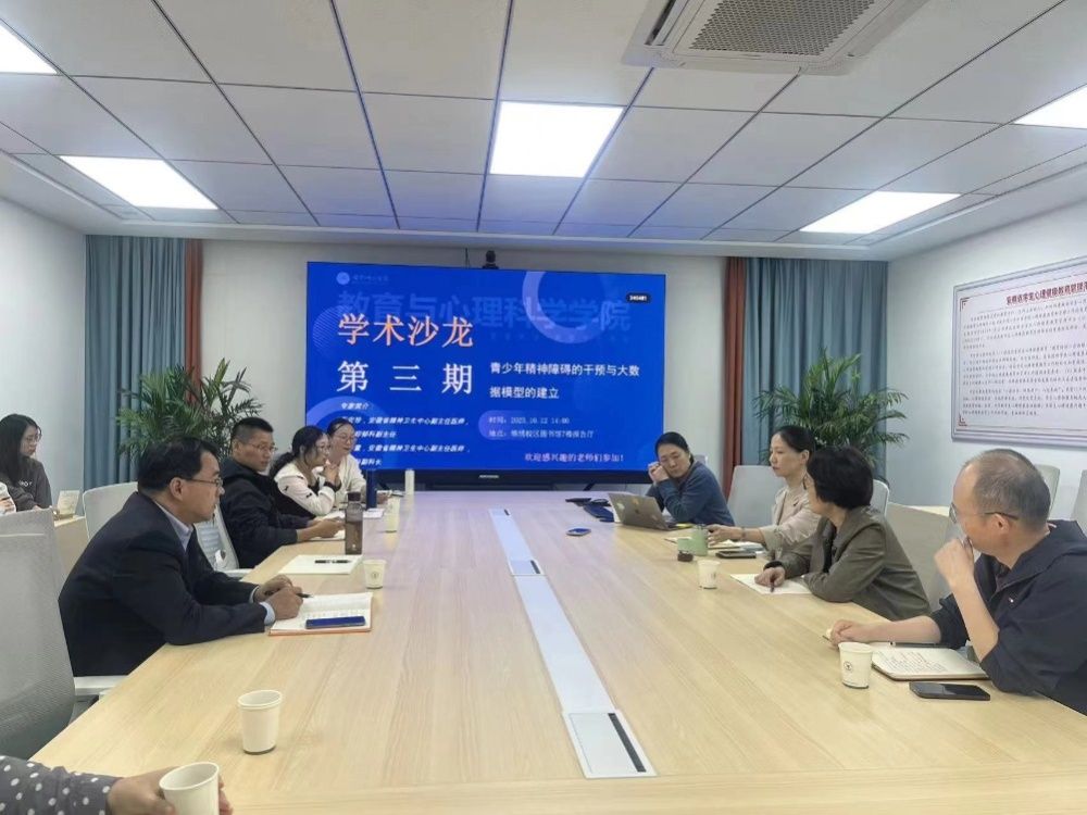 本期学术沙龙邀请了合肥市第四人民医院安徽省精神卫生中心副主任医师王安珍、安徽省精神卫生中心副主任医师徐小童,合肥工业大学计算机与信息学院俞奎教授,合肥师范学院计算机学院院长谢飞教授、郭芝源博士、李宜兵博士,教育与心理科学学院副院长胡连峰、陈晓惠副教授、姚琼副教授,张华玲副教授和梁昕博士等多位专家和学者共同参与,共话青少年精神障碍的干预与大数据模型的建立。