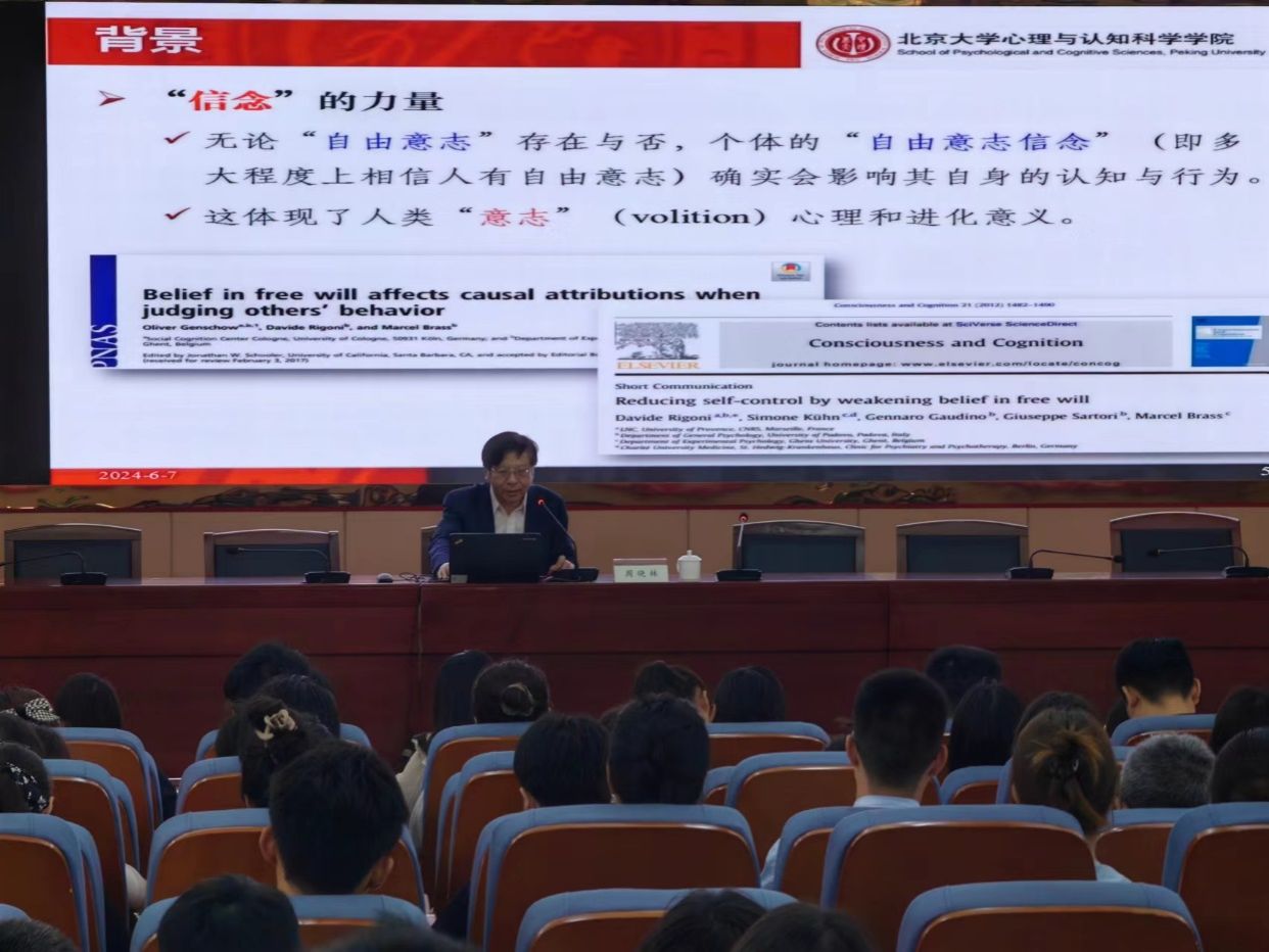 周晓林从研究背景、自主选择促进行为反应、自主选择影响执行控制等三个方面进行详细报告。他通过自由意志论和因果决定论之争的哲学话题,提出“自由意志信念”和“自主选择”在个体认知表现中的促进作用;介绍其团队一系列设计精妙、深入浅出的行为实验,系统分析自由意志、自主选择与行为控制的内涵及其三者之间的关系。他最后提出,个体需要相信自身意志确实能对其内在决策产生影响,从而改变任务结果,而人们只有保持这种“控制信念”时,才能从自主选择中获得积极效应。