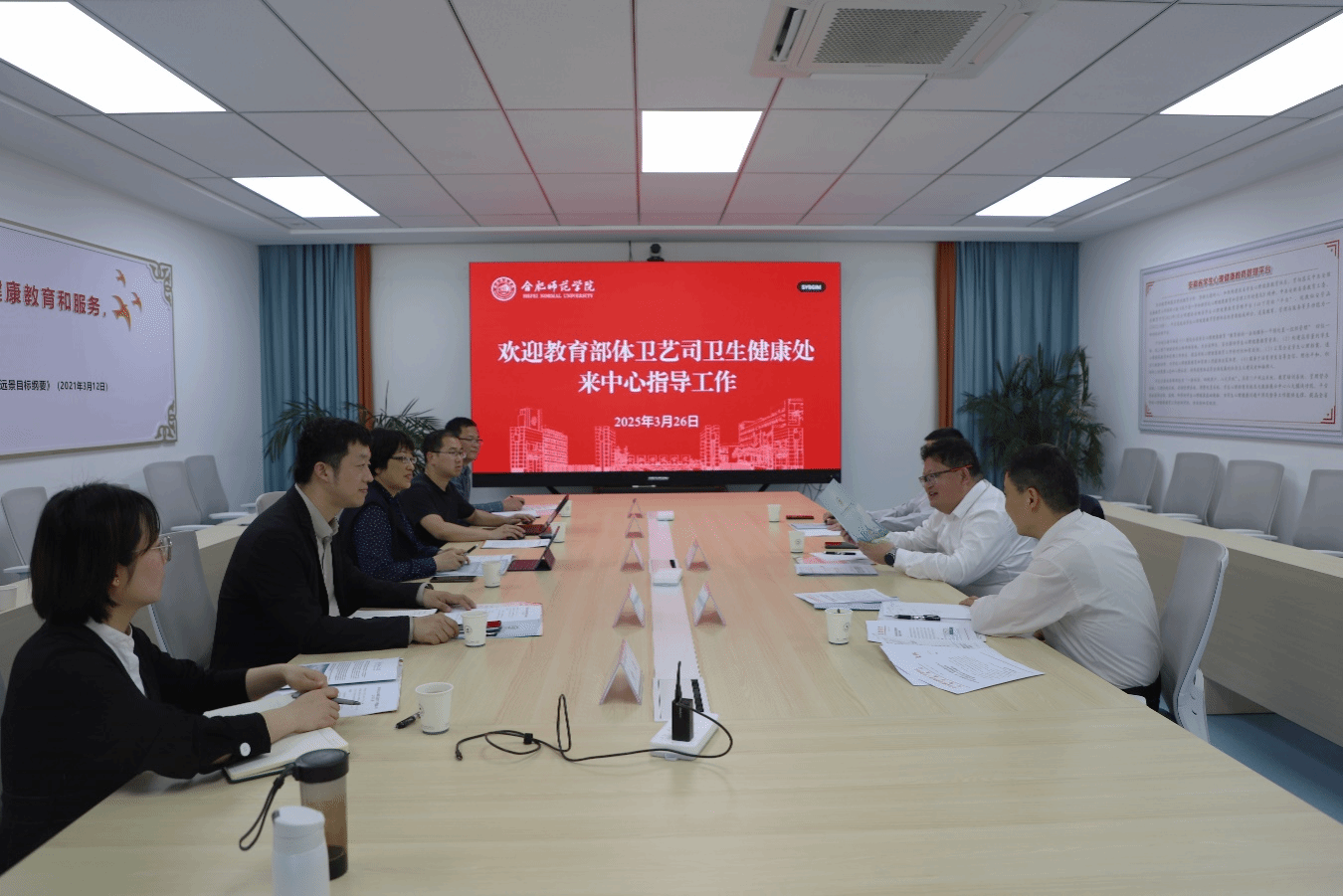 3月26日下午,教育部体卫艺司卫生健康处处长樊泽民一行来我校调研安徽省学生心理健康教育指导和发展中心,安徽省教育厅学生处处长马家松、院党委副书记、院长方东玲陪同调研,教育与心理科学学院负责人及教师代表参加调研座谈会。