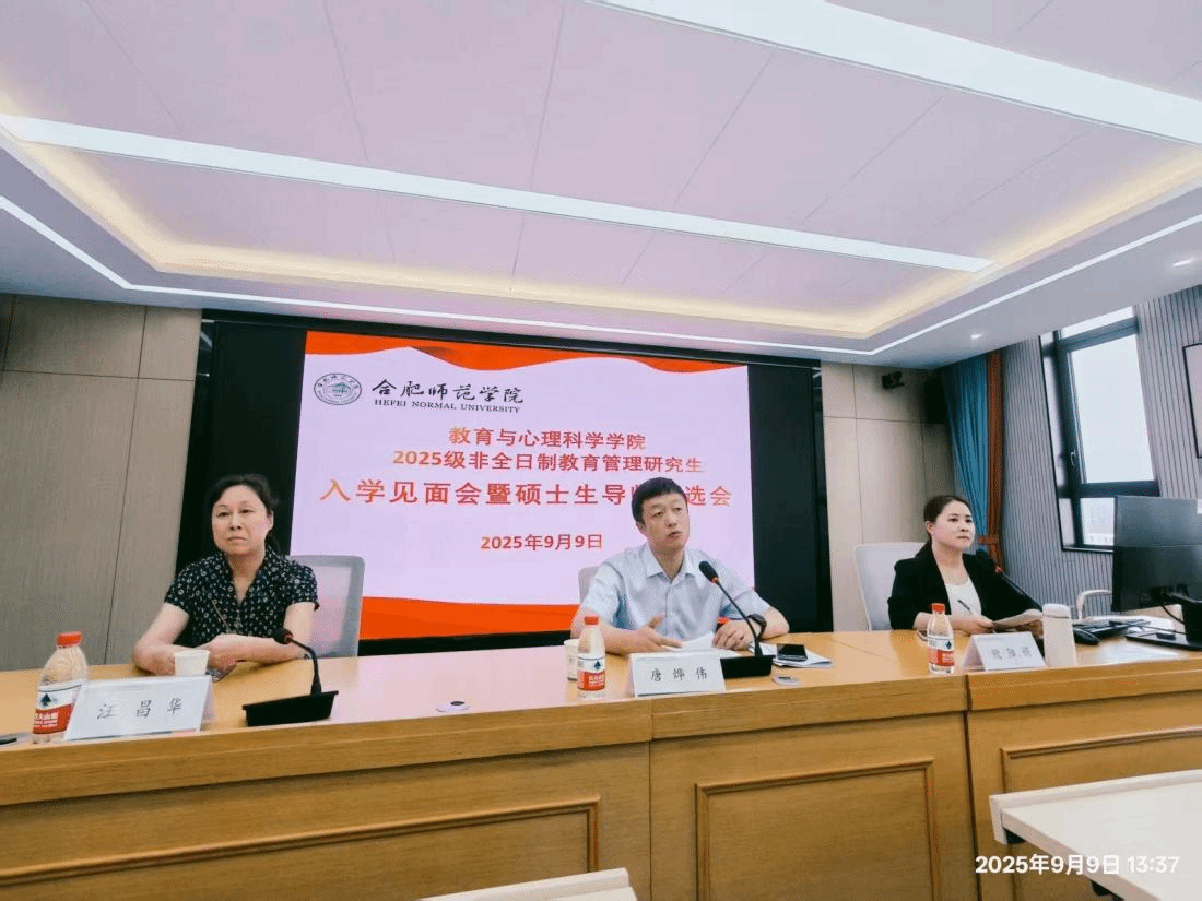 2025年9月9日下午,教育与心理科学学院成功举办2025级非全日制教育管理研究生入学见面会暨硕士生导师双选会。院长唐烨伟教授、全体硕士生导师、2025级全体教育管理硕士研究生参加会议。会议由欧阳娟老师主持。