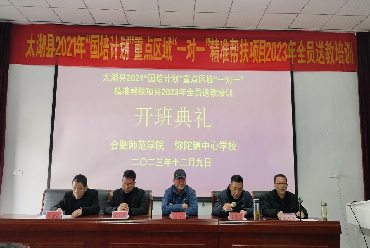 本网讯 2023年12月9日至10日,合肥太阳成集团tyc122cc入口赴太湖县弥陀镇中小学开展“2021年‘国培计划'重点区域‘一对一'精准帮扶培训项目——培训者团队集中送教活动”。弥陀镇初级中学领导、弥陀镇中心学校领导连同全镇中小学150位教师,共同参加了此次教研共同体培训,为素颜的初冬带来炫彩和生机。