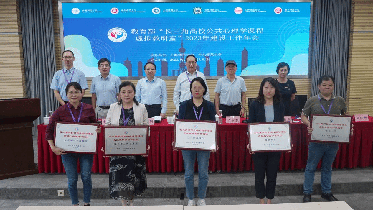 为深入贯彻落实党的二十大报告中关于“推进教育数字化”“培养高素质教师队伍”的重要部署,加强新型高校基层教学组织建设,深化虚拟教研室建设探索。教育部“长三角高校公共心理学课程虚拟教研室”建设工作年会暨第二次教研工作全体会议于 2023年9月22日至9月24日在上海师范大学召开。本次会议由合肥师范学院“教育部长三角高校公共心理学课程虚拟教研室”主办,上海师范大学教育学院、华东师范大学心理与认知科学学院共同承办,出席会议的有教育部高等学校心理学类专业教学指导委员会主任、华东师范大学心理与认知科学学院院长周晓林教授、上海师范大学教务处长高湘萍教授、国家级教学名师卢家楣教授,以及来自虚拟教研室共建单位合肥师范学院、华东师范大学、南京师范大学、上海师范大学、安庆师范大学、湖州师范学院的负责同志,虚拟教研室协作建设院校复旦大学、杭州师范大学、江苏师范大学、温州大学、安徽师范大学、安徽农业大学、安徽中医药大学、淮北师范大学、南京晓庄学院、江苏第二师范学院、绍兴文理学院、淮南师范学院、池州学院、黄山学院、巢湖学院、亳州学院、芜湖职业技术学院、台州科技职业学院等30余所高校的心理学专家学者参加会议。我校教育与心理科学学院部分教师参加了会议。会议由教育部“长三角高校公共心理学课程虚拟教研室”负责人姚本先教授主持。