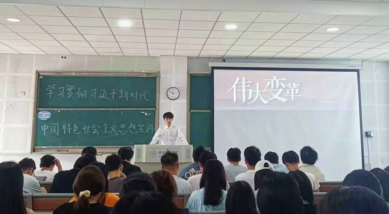 吴束结合学习贯彻习近平新时代中国特色社会主义思想主题教育内容,开展了三个篇章的主题宣讲,分别为“伟大变革”、“思想伟力”、“光明前景”。三个篇章在阐释历经十年伟大变革,中华民族伟大复兴的伟大历史进程和习近平新时代中国特色社会主义思想的同时,也聚焦展现了中国式现代化道路为强国建设、民族复兴及青年发展开辟的光明前景。