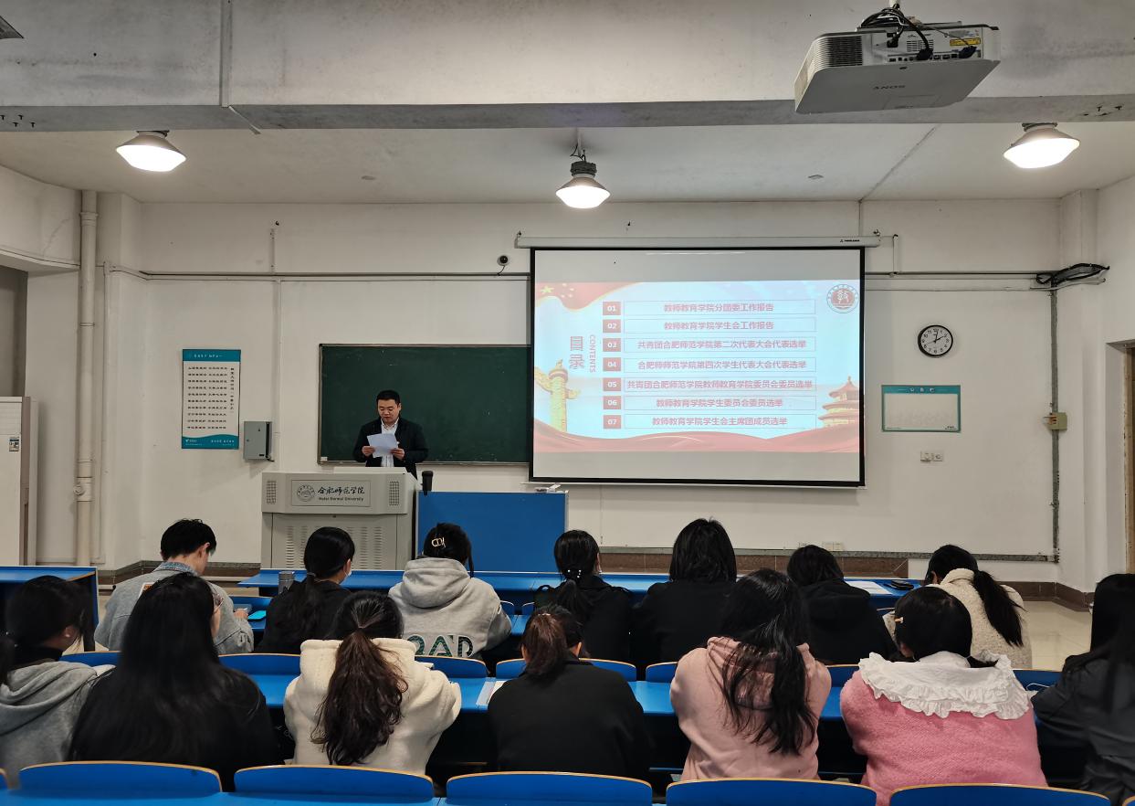 根据议程安排,大会选举产生共青团合肥师范学院第二次代表大会代表、合肥师范学院第四次学生代表大会代表、共青团合肥师范学院教师教育学院委员会委员、教师教育学院学生委员会委员和教师教育学院学生会主席团成员。
