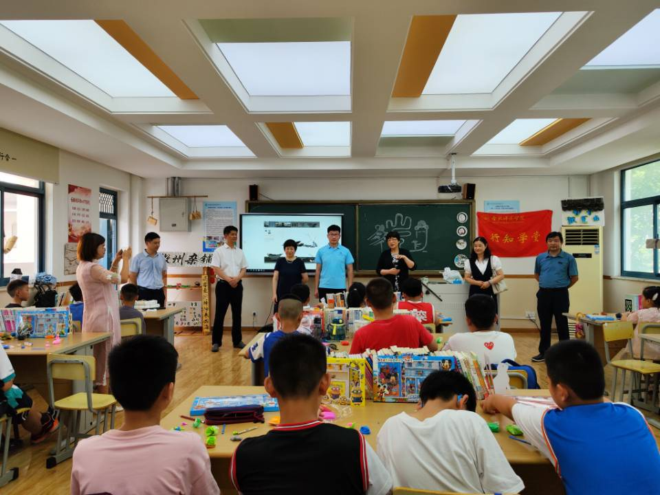 方东玲一行人首先参观了学校的锦实劳动基地,并和锦实劳动基地的小学生们亲切交流,询问假期劳动情况;随后来到了二楼的图书阅览室,这里正在进行的是合肥师范学院开展的“行知学堂”,小先生们正在教授以“徽风皖韵”为主题的手工课。方东玲一行人饶有兴致地观摩了课程教学,并将带来的精美文具送给可爱的孩子们。方东玲详细地询问了团队组成、课程安排和活动开展情况,鼓励小先生们结合自己的专业特色为孩子们带去形式多样、内容丰富的教育,为孩子们传授有用的知识,让孩子们健康快乐阳光成长,同时叮嘱小先生们要牢记习近平总书记的要求,严守教师道德,塑造爱生情怀,并通过实践不断检验、提升自己的专业能力,让自己在服务社会中尽快成长,办好学校和家长满意的行知学堂。
