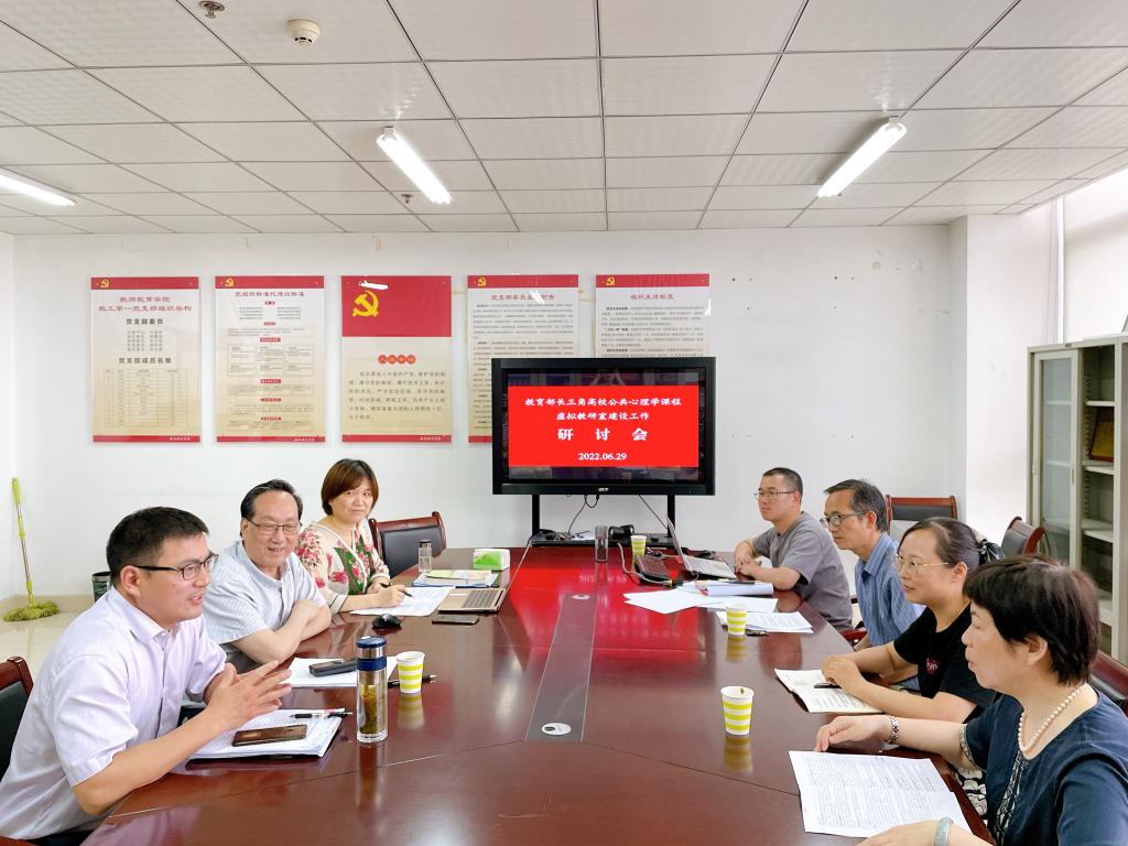 6月29日上午,教育部“长三角高校公共心理学课程虚拟教研室”建设工作研讨会在合肥师范学院行知楼706会议室召开,合肥师范学院党委委员、副院长周端明,虚拟教研室负责人姚本先教授,教师教育学院院长李群教授,心理系教研室主任吴桂翎教授及教师代表蒋名平、姚琼、胡哲老师参加会议。