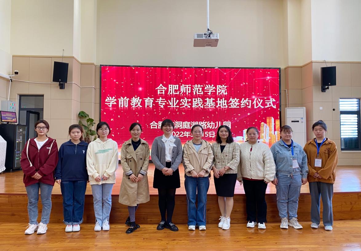 春暖花开,细雨润物。2022年3月15日上午,合肥师范学院教师教育学院学前教育系与合肥市洞庭湖路幼儿园顺利举行了“学前教育专业实践教育基地”签约授牌仪式。合肥师范学院教师教育学院学前教育系主任孙延永、教师欧阳娟、洞庭湖路幼儿园执行园长赵静与教学主任杨园园等参与了本次签约仪式。