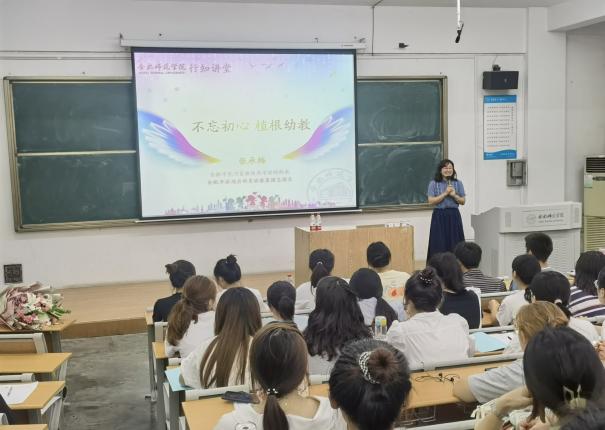 为进一步加深教师教育学院学前教育专业的学生对办园现状的了解,把握新时代学前教育发展方向,教师教育学院与科研处于9月28日晚联合举办行知讲堂,邀请合肥市包河区教体局学前科科长、合肥市滨湖启明星幼教集团总园长张承梅受邀做“不忘初心,根植幼教”专题讲座,教师教育学院副院长闫龙、吴皖赣老师到会主持。