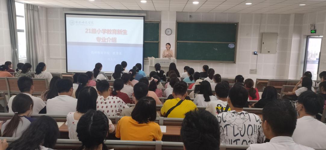 (本网讯)9月8日上午9点30分,教师教育学院在滨湖校区博学楼A108召开2021级小学教育新生专业介绍会,教育系邓珍珍老师主讲,2021级小学教育全体学生参加。