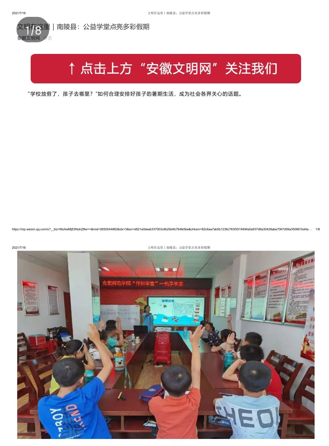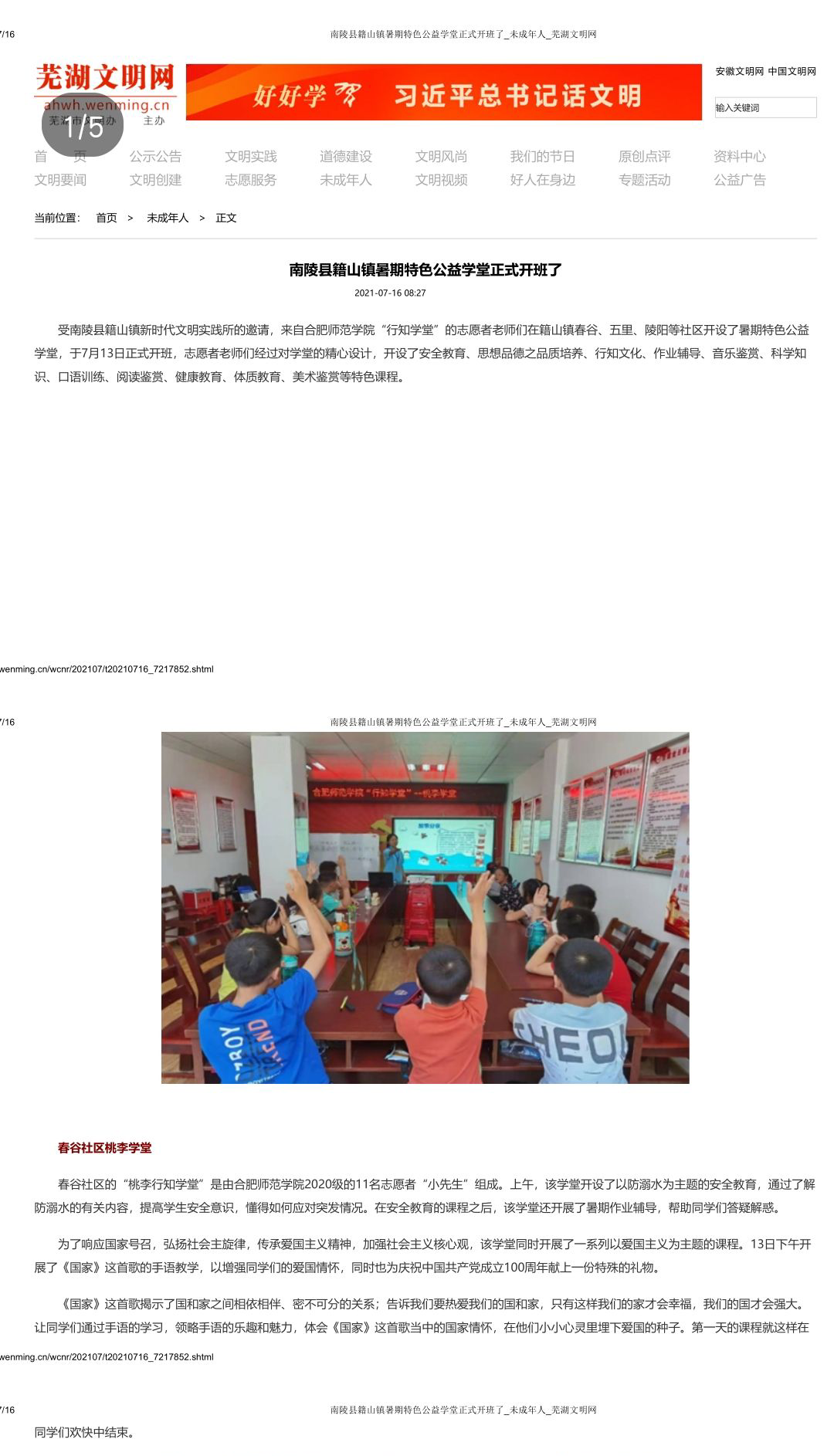 7月16日,安徽文明网、芜湖文明网分别对此进行了报道。(教师教育学院:王磊 陈德蓉)