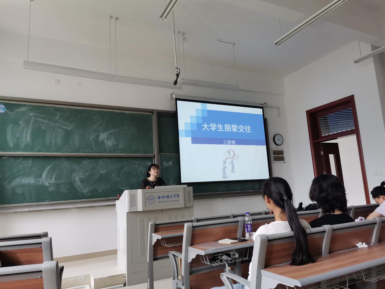 教师教育学院教工第三党支部在学院党委的领导下,坚持全心全意为师生服务,积极开展“我为师生办实事”实践活动,把学习党史同推动工作、解决实际问题相结合,着力解决学生的烦心事。为引导学生建立良好的朋辈关系,培养积极的社会角色意识,提高环境适应与合作竞争的社会能力,6月9日下午,教工第三党支部在滨湖校区铭传楼A309举办了大学生朋辈交往心理专题讲座。教工第三党支部副书记吴珊珊老师为同学们开讲,教师教育学院2020级全体学生聆听讲座。