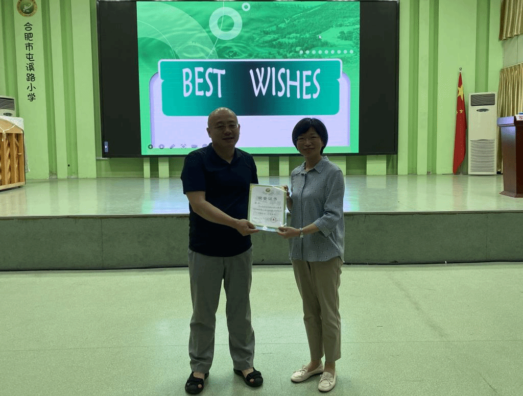 讲座结束后,屯溪路小学校长卞玉昌向翟莉副教授颁发了荣誉证书,特别感谢她一直以来在学校教师专业发展方面所做的辛勤工作,并希望继续得到课题研究方面的指导和支持。