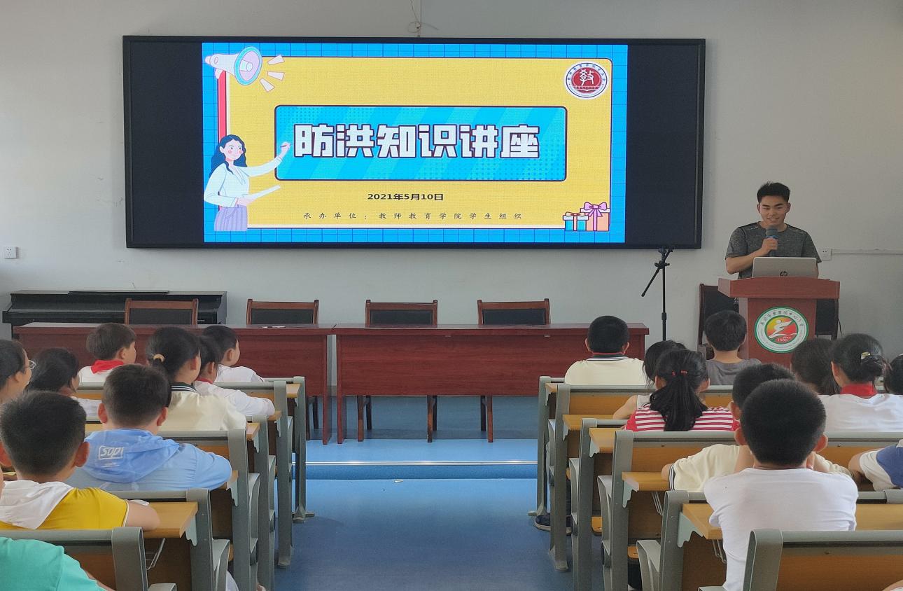 为进一步落实习近平总书记在党史学习教育动员大会中“学史明理、学史增信、学史崇德、学史力行”的要求,教师教育学院深入开展“学党史、强信念、跟党走”学习教育。5月10日下午,教师教育学院分团委、学生第一党支部应黄麓镇中心小学的邀请,组织党员、团员青年前往该校为全体四年级学生开展防洪防汛安全知识宣讲,2019级应用心理学专业唐旭州同学担任主讲。