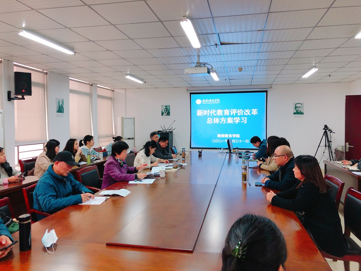 《总体方案》的学习不仅让全体教职工深刻理解了该方案出台的目的意义、总体要求、重点任务与实施方法,而且引发了大家对如何认识新时代教育评价改革、如何利用新时代教育评价改革推进教育发展以及如何把教书育人的责任落到实处方面的积极思考。大家一致表示,将在今后的工作中,以改革的精神和奋进的姿态推进教育评价改革各项任务举措落地见效,为学校学院发展作出新贡献。(教师教育学院:邢文静)