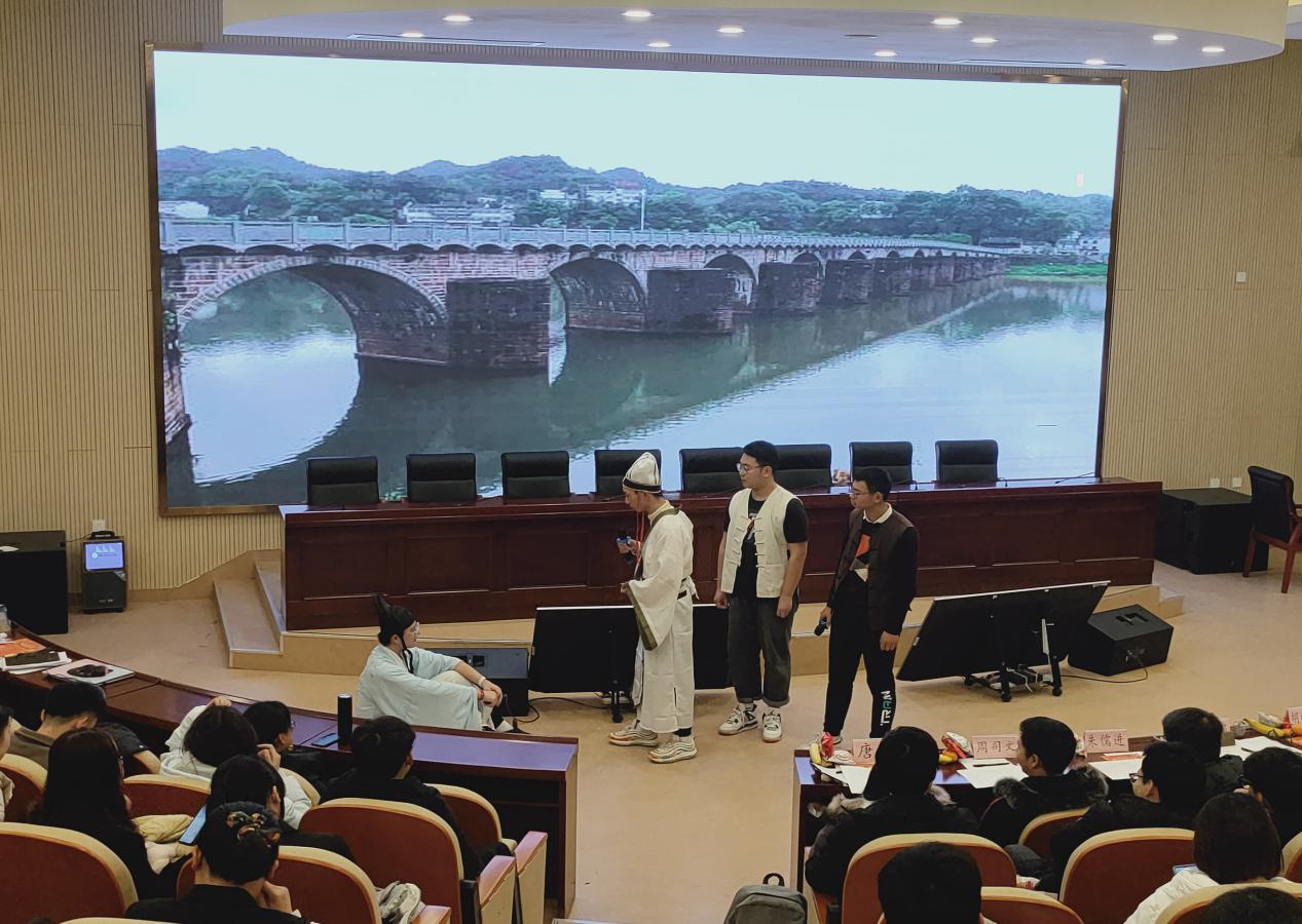 决赛分为两个环节,第一环节是作品展示,各参赛队伍介绍并展示自己的vlog作品。来自化学与化学工程学院的高山队带来的作品是《前世不修,生在徽州》,作品从讲述徽州的魅力与变化着手,用镜头记录徽州的自然美、人文美,反映了新时代青年不断努力走出家乡寻求更好发展的同时,也依旧不忘初心,同时也表达了希望自己的家乡越来越繁华的美好祝愿。来自教师教育学院的Zan-升日队带来的作品是《同行》,队伍的组成是由两名新疆同学和一名安徽本地同学组成,她们的作品从互帮互助、互相监督学习入手,作品不仅表现了当代青年积极向上、热情乐观的精神风貌,同时也反映出大学校园民族团结,共同进步的现状。