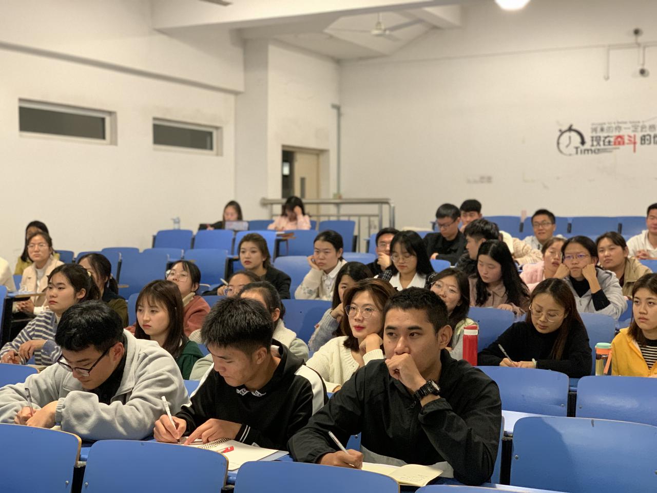 合肥市学科带头人,安徽省教坛新星太湖路小学语文高级教师刘琴开展了题为“基于课程标准的小学语文教学实践”的讲座。刘琴老师从“研读课程标准”、“用好语文教材”、“培养学生对母语的喜爱之情”等方面对当前教育部语文统编教材的教学教法进行了详细解读。她结合自己一线教学中的丰富案例,讲解课程标准对语文教师的重要性,强调语文人文性和工具性相统一的课程性质,并让在座的同学们结合所学的相关理论进行思考,使同学们对语文教学实践有了更进一步的认识。她还结合当前同学们进行的实习给出了建议:多记录,多阅读,多反思。