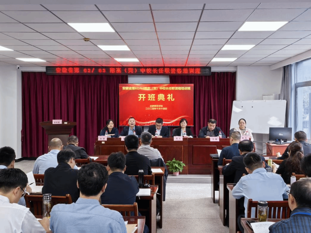 10月14日上午,由安徽省教育厅主办、合肥师范学院承办的第62、63期高(完)中校长任职资格培训班在合肥师范学院三孝口校区开班。继续教育学院院长吴文、副院长王磊,教育与心理科学学院副院长胡连峰,培训部主任谢威士,班主任晋玉、杨婷等出席开班仪式,来自全省的100余名普通高(完)中校长任职资格培训班参训学员参加开班仪式,仪式由胡连峰主持。