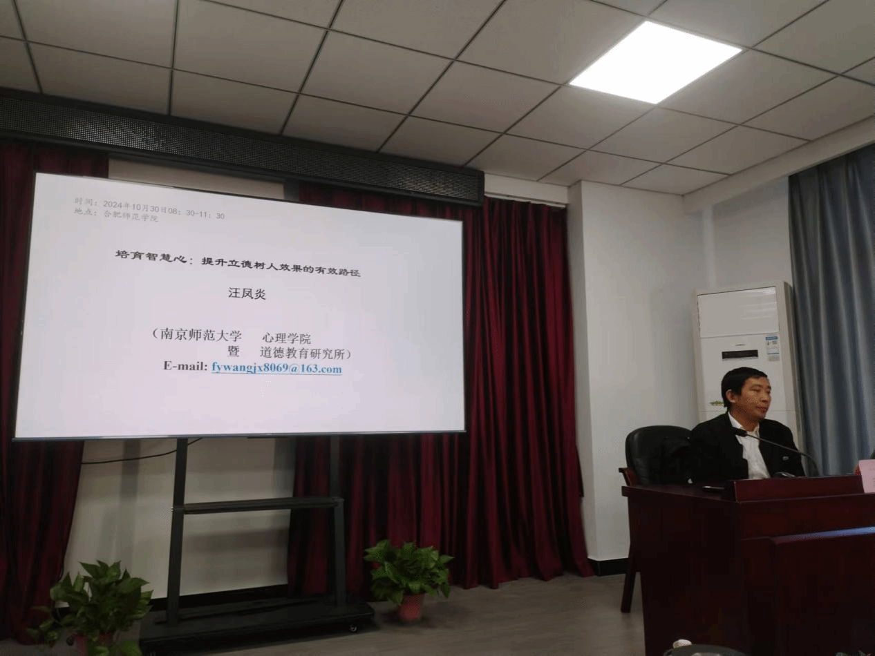 10月30日上午,南京师范大学汪凤炎教授应邀在合肥师范学院干训教室为安徽省第62/63期高(完)中校长任职资格培训班学员授课,一百余位学员聆听了讲座。