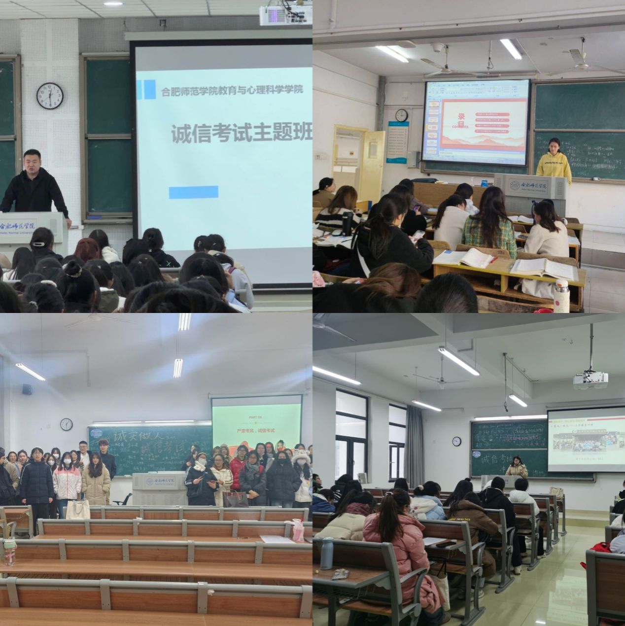 本网讯 为进一步贯彻落实学校“学风建设年”工作要求,深入推进学院学风建设,加强大学生诚信教育,营造良好考风氛围,12月下旬以来,教育与心理科学学院各年级分别在锦绣校区和滨湖校区开展“诚心求知,诚信考试”主题活动。