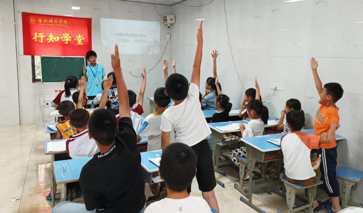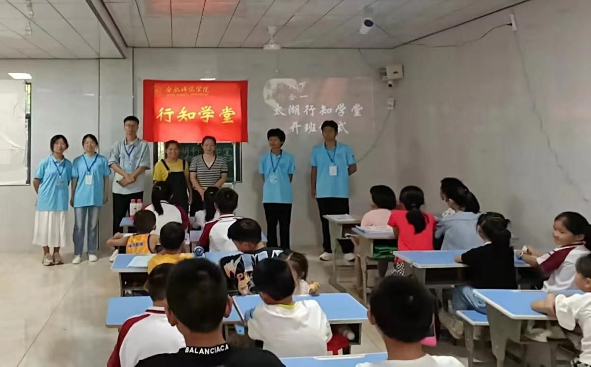 7月15日,教育与心理科学学院太湖行知学堂在安庆市太湖县江塘乡五星村顺利开班,5位小先生、22名小学员及家长参加了开班仪式。