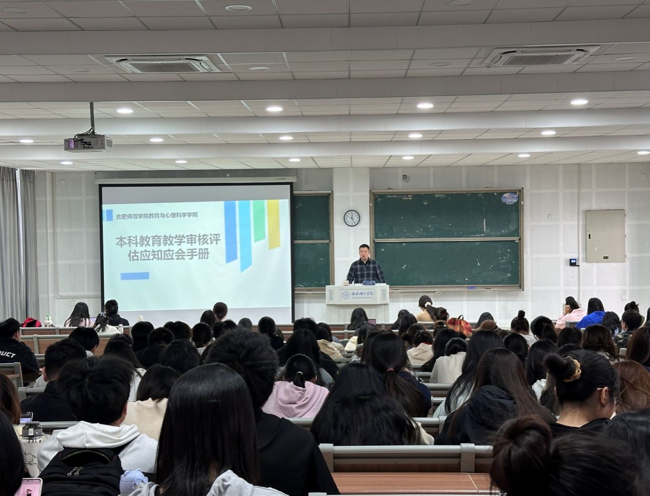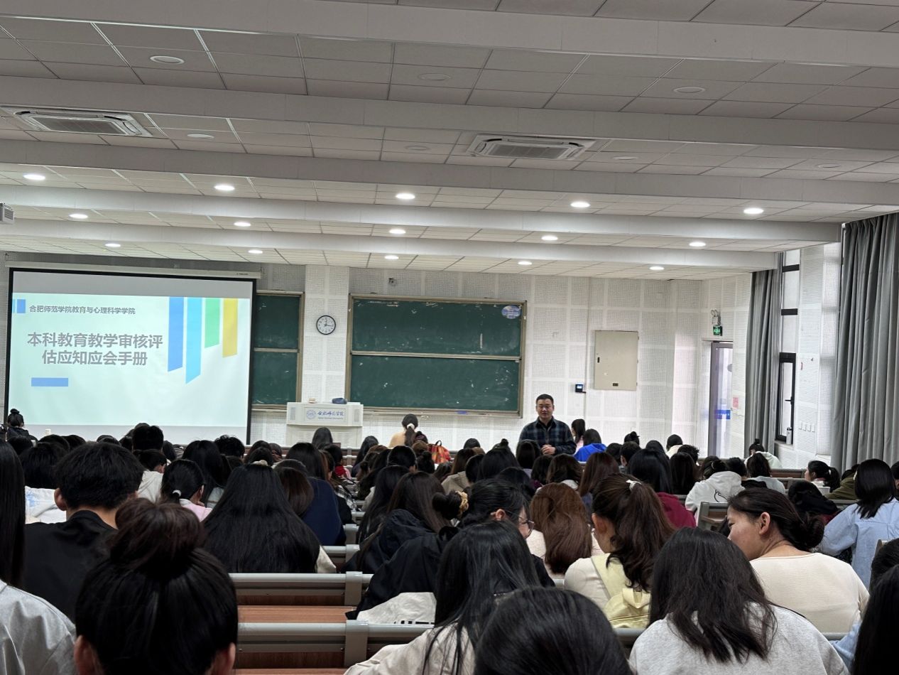 为进一步加强新一轮本科教育教学审核评估理念和知识的学习宣传,增强青年大学生的责任感使命感,形成师生思想统一、人人参与的良好氛围,4月11日中午,教育与心理科学学院在滨湖校区博学楼A108教室召开审核评估知识学习会,学院滨湖校区全体学生参加会议,会议由学院分团委书记王磊主持。