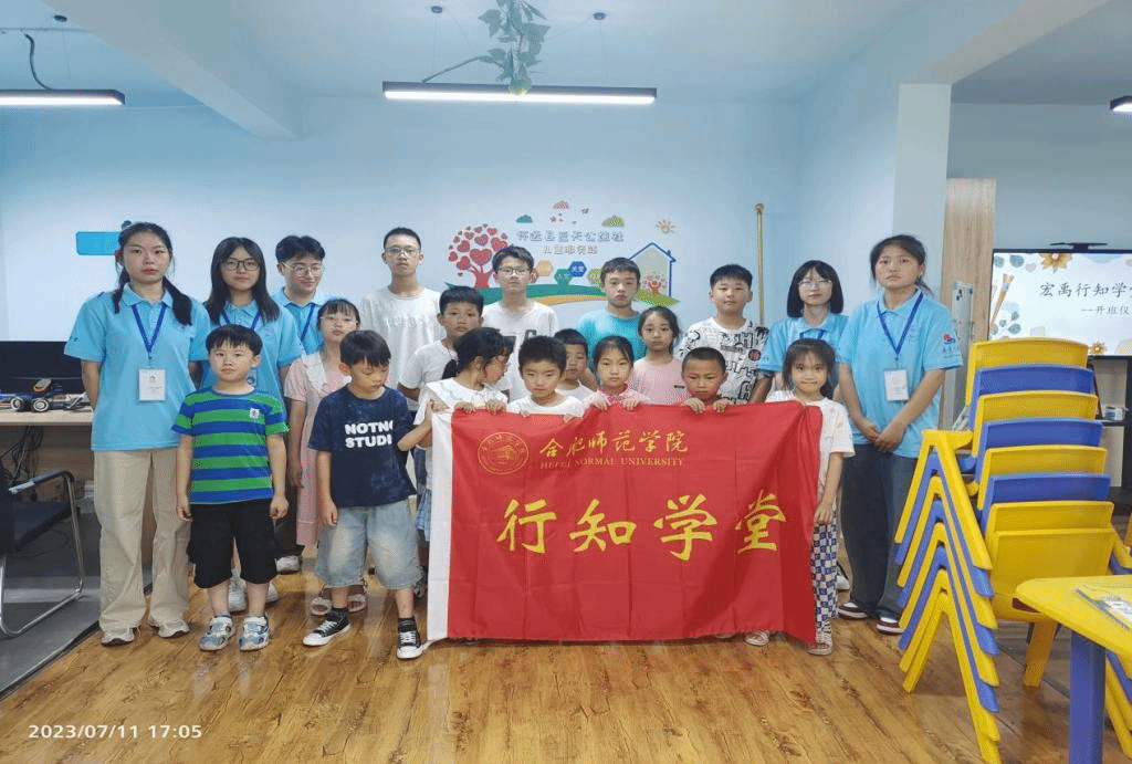 传行知精神,筑青春梦想。7月1日下午,教育与心理科学学院宏禹行知学堂在蚌埠市怀远县蓝天公益社正式开班。来自教育与心理科学学院、文学院和生物与食品工程学院的5名小先生和全体小学员们参加了开班仪式。