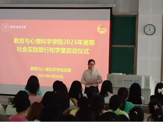 (本网讯)6月20日上午,教育与心理科学学院在滨湖校区博学楼举行2023年暑期“三下乡”暨“行知学堂”实践活动启动仪式。教育与心理科学学院党委书记董萍、党委副书记陈帅帅,相关指导教师和滨湖校区学生代表参会,会议由教育与心理科学学院分团委书记王磊主持。