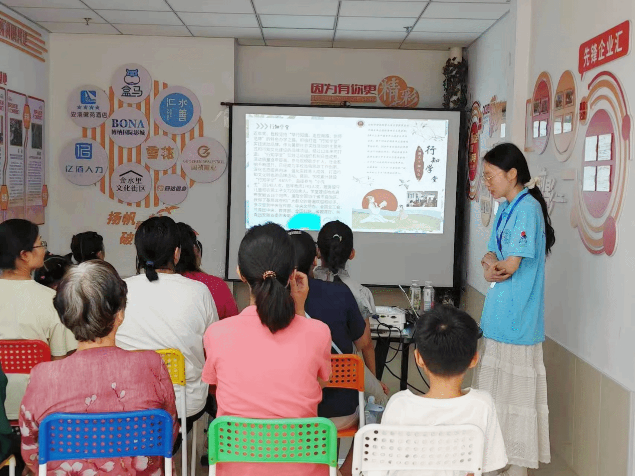 贡献青春力量,书写青春华章。7月8日,教育与心理科学学院弘毅行知学堂走进合肥市蜀山区陈村路社区,在陈村路社区成长生活馆馆长琚辉娟和学堂负责人金妍的组织下举行开班仪式,5位“小先生”和28位小学员及家长参加开班仪式。
