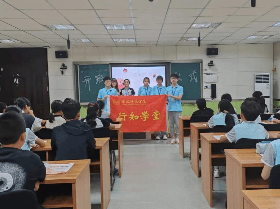 7月15日,教育与心理科学学院衡山镇行知学堂在霍山县衡山镇东城中心学校顺利开班,7名小先生和40名小学员共同参加了开班仪式。