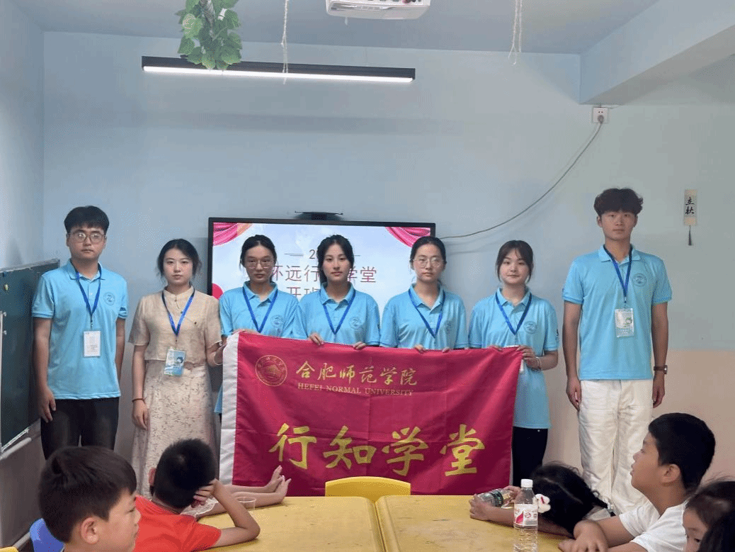7月8日,教育与心理科学学院怀远行知学堂在蚌埠市怀远县蓝天公益社顺利开班。蓝天公益社项目部部长高亮、儿童服务站负责人惠秀荣与来自教育与心理科学学院、美术与设计学院、计算机与人工智能学院的6名小先生和16名小学员共同参加了此次开班仪式。