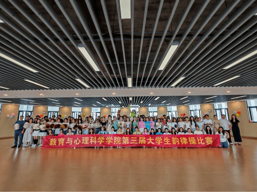 为深化大学生心理健康教育,推进以体强心、以美育人,激发青年学子积极向上的精神风貌,5月28日下午,教育与心理科学学院在滨湖校区铭传楼3楼举办第三届大学生韵律操比赛。