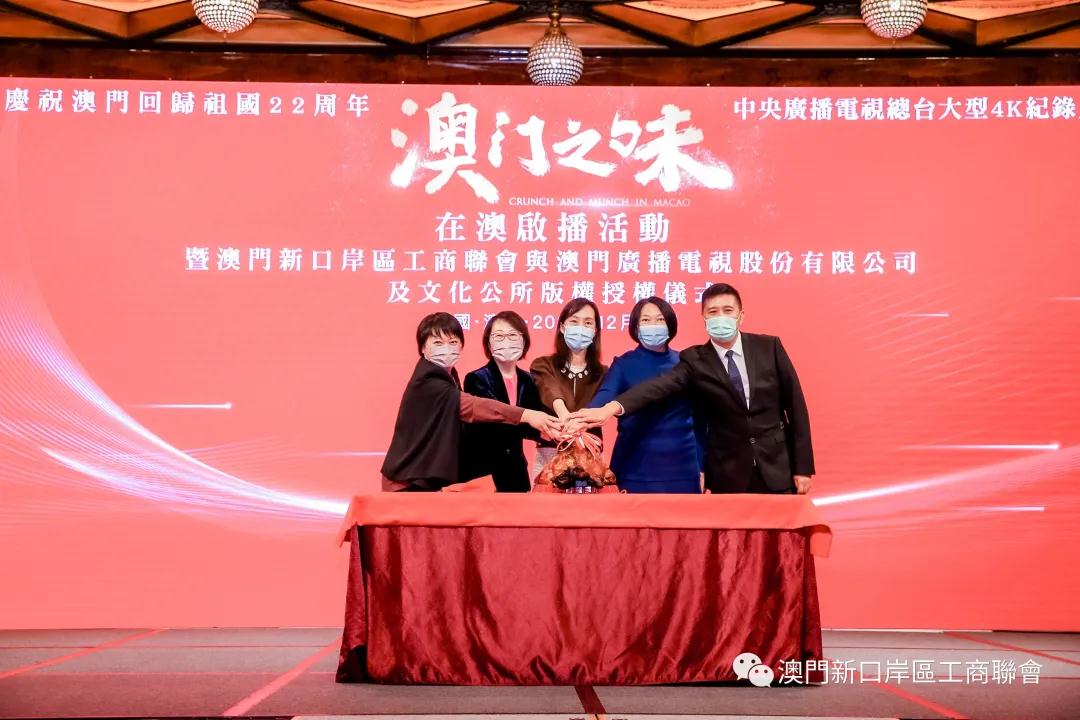 为庆祝澳门回归祖国22周年,由中央广播电视总台与澳门新口岸区工商联会联合制作的大型4K纪录片《澳门之味》12月20日在澳门隆重举行启播仪式。澳门特别行政区政府社会文化司司长欧阳瑜、中央人民政府驻澳门特别行政区联络办公室副主任严植婵、中央广播电视总台影视剧纪录片中心副主任兼《澳门之味》监制梁红等各界嘉宾近百人出席活动。